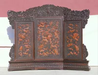 49.紫檀嵌黃楊木雕云龍寶座屏風 清乾隆