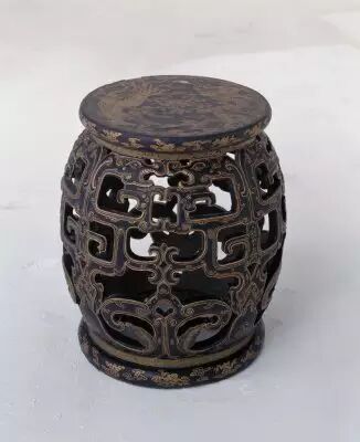 27.黑漆描金龍鳳紋繡墩 清