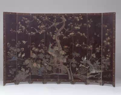 64.黑漆款彩百鳥朝鳳圖圍屏 清早期