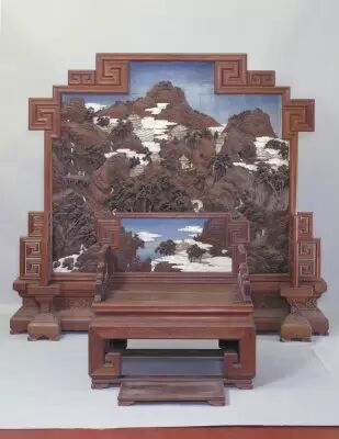 72.黃花梨嵌牙木雕山水寶座 清中期