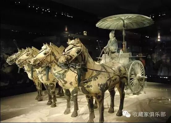 在秦陵墓冢西側的一個陪葬坑內,還有2乘銅車馬。專家們指出,陶俑、陶馬本來都是彩俑。1999年,在先進技朮的支持下,考古工作者終于得以保住兵馬俑上的顏色,讓其以本來絢麗多彩的面目呈現在世界面前。