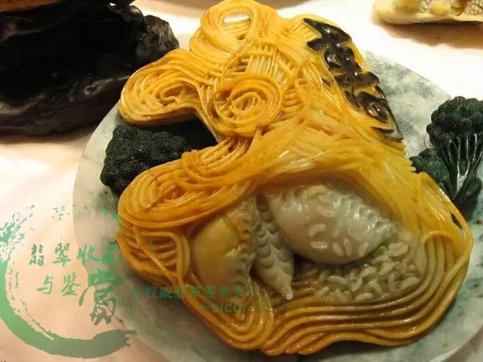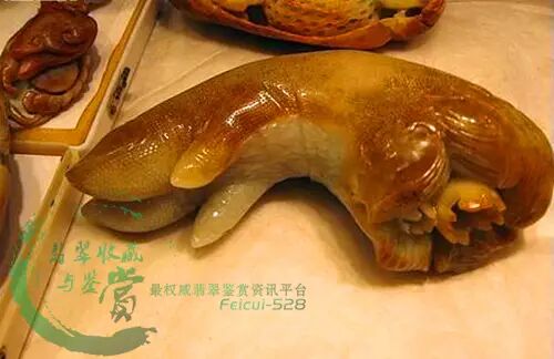 翡翠乾煎鯧魚。這和剛出鍋的干煎鯧魚有什麼兩樣?翡翠的寫實藝術比虛擬藝術的價值高出許多倍,報價1500萬!