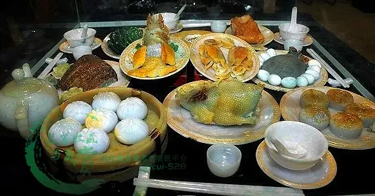 這桌號稱“天下第一”的奇石宴,共有各類菜品600餘道,野味、海鮮、五穀、蔬果、甜品、美酒等應有盡有,由數万件天然奇石拼盤組合而成。