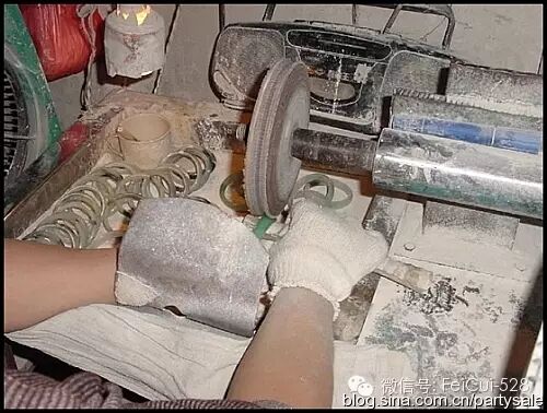 注膠後,待有機膠硬化;再打磨、拋光除去面多餘的有機膠質,制得B貨翡翠。翡翠B貨由於已經人工處理,佩戴一段時間會由於有機膠老化而失去光澤、變黃,裡面滲入的強酸開始向外揮發,隨著汗液進入人體,導致皮膚癌症