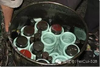 接下來將其浸入有機膠中、抽真空,排除翡翠微裂隙中的空氣,並使有機膠充分地註入微裂隙中。-- 注膠