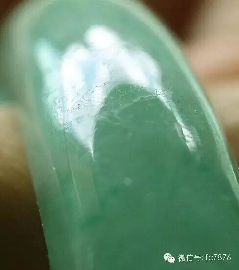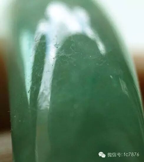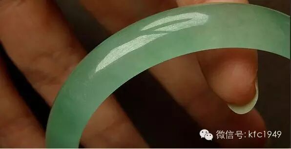 傳說中的滴水法,說是水滴上去呈圓珠狀的是A 貨翡翠。用一滴水滴玉鐲上面如果水滴不散開而是凝聚一起,說明此件玉鐲是真的。