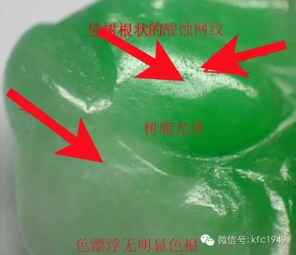 可能大家都知道,經過酸洗的翡翠一般都會出現這種網紋。
