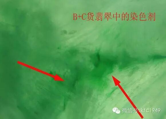 而B的範疇是:1、經過酸洗且注膠的翡翠。2經過酸洗、大量注蠟的翡翠。