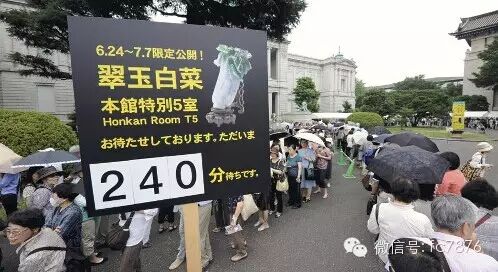 2014年台北故宮策劃的“台北故宮博物院神品至寶展”在日本東京如期開展,首度外借的台北故宮鎮館之寶“翡翠白菜”人氣最旺。“翡翠白菜”因僅展出2週(6月24日至7月7日),更形成一股熱潮。民眾入場參觀,都必須排隊超過3小時以上。