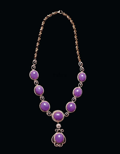 8.緬甸天然紫羅蘭翡翠珠項鍊,成交價:1354萬港元。