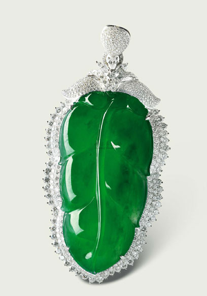 9. 天然翡翠滿綠葉子挂件,成交價:1265萬元人民幣。