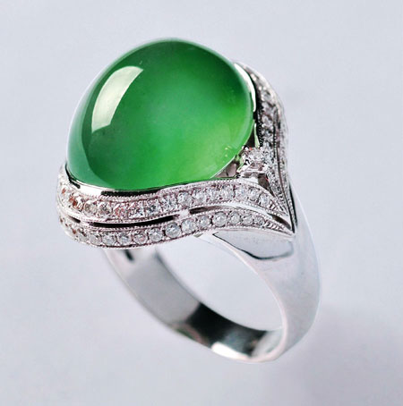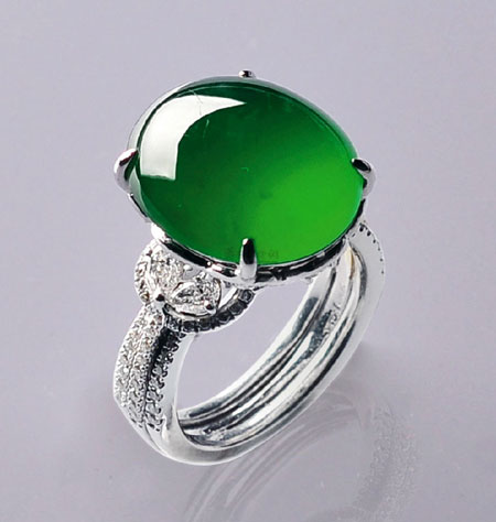 41. 玻璃種淺綠戒指(13.21克),成交價格:34.5萬元人民幣。