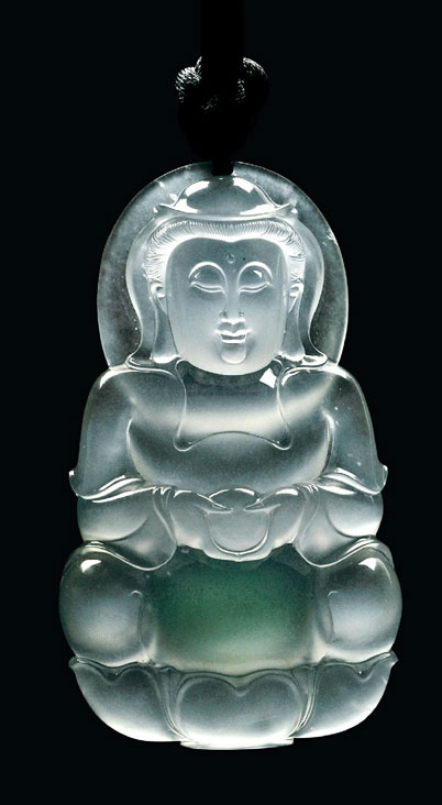 11. 天然翡翠滿綠觀音配鑽石吊墜,成交價:920萬元人民幣。