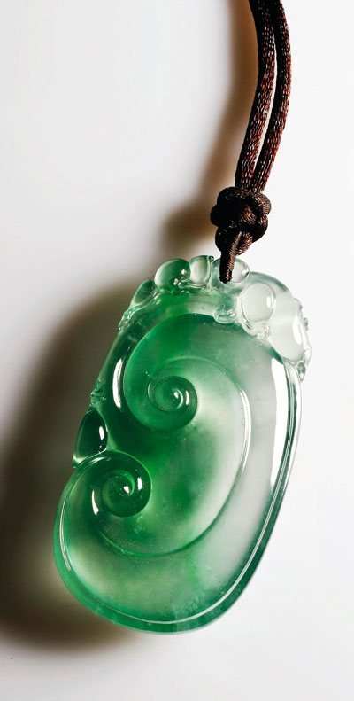 40. 滿綠玻璃種挂墜(16.72克),成交價格:39.75萬元人民幣。