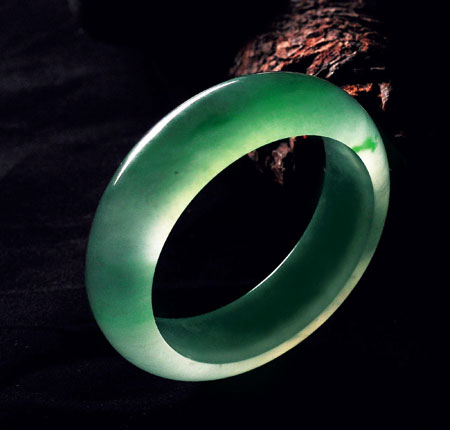 14.玻璃種帶翠手鐲( 內徑5.28cm,寬1.30cm,厚0.95cm ),成交價格:1億零925萬元人民幣。