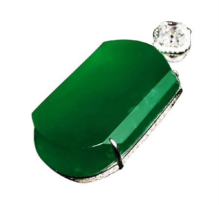 13.帝王綠大方牌(4.79cmX3.2cmX1.45cm,92.90克),成交價:1億零350萬元人民幣。