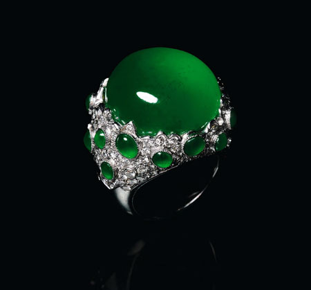 23. 滿綠玻璃種戒指(32.94克),成交價格:552萬元人民幣。