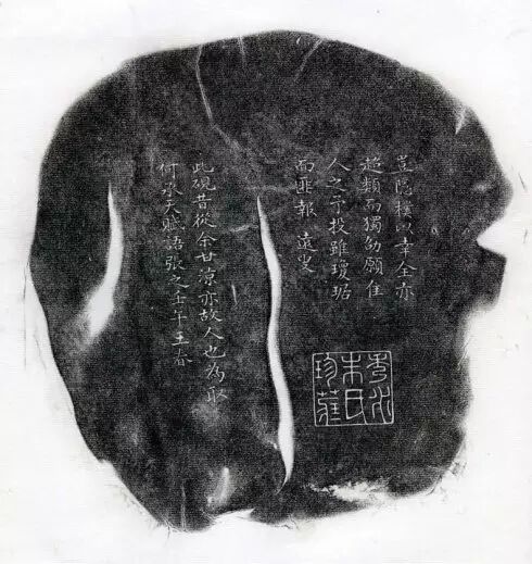 梅花坑石。硯崗銘文:方正醇古。硯側銘文:既正乃方,醇古而昌,君子珍止,終焉允藏。野鶴氏嘲語銘研。斯硯斯硯,幾經磨研。因方見棄,埋沒多年,人皆厭其古拙,我獨取其粹然。嗚呼噫嘻,寧為圭方,不為珠員。嘉靖庚子(1540年)焦山繼盛題。