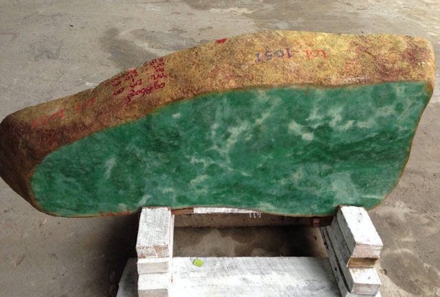 編號1051這塊豆青種翡翠原石標價是90000歐元=612099人民幣元