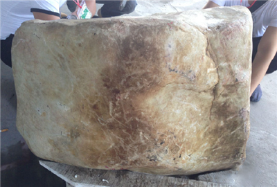 這塊原石和500萬歐元那塊長的實在是太像了,但只有那塊重量的一半。肯定是同一塊料子切開的,按這樣說,這塊整石就值700萬歐元了,標價就差不多5000萬人民幣,成交那還得了。如果不切開,估計這塊整石就是標王無疑了。