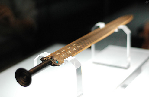 越王勾踐劍,此劍歷時千載而不銹,且具備金屬記憶功能。在兩千餘年之後出土,鋒利依然,帶給世人無限的讚嘆。而且表面這紋飾設計,不覺得LV應該給版權費嘛?不知道歃血上去,會不會有電視劇裡魔劍的玄幻效果!