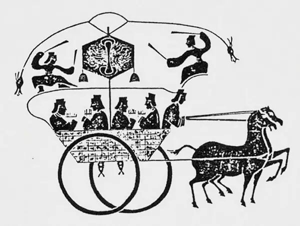 漢代壁畫,有沒有覺得圖上那兩個站在車頂上的人很二逼?其實那不是真人。實物長這樣。↓↓↓