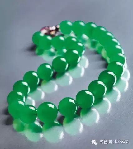 該項鍊由27 顆極為珍貴的翡翠珠串連而成