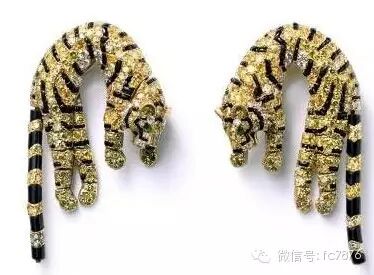 卡地亞專門為其定制的一對老虎造型黃金鑲鑽耳環及胸針現已珍藏在“卡地亞典藏”系列中