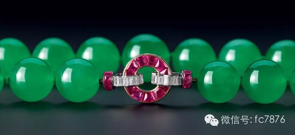 芭芭拉•赫頓委託卡地亞為這串翡翠項鍊定制了紅寶石鑲鑽鏈扣