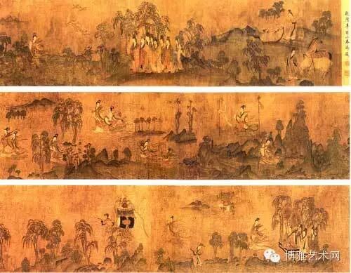 南宋之後一直到乾隆皇帝,畫卷的流傳線索就比較清晰。元代的阿里,明代的嚴嵩、項元汴、顧從以、張准等,清代的梁清標、笪重光、安歧、乾隆皇帝等,都先後成為此畫的收藏者。明代還有兩位著名的文士--王世貞和董其昌在他們的文集中留下了品賞繪畫的記錄。