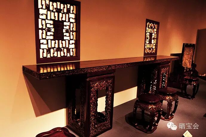 紫檀嵌玉石屏風紫檀雕龍紋寶座紫檀雕龍紋長方桌