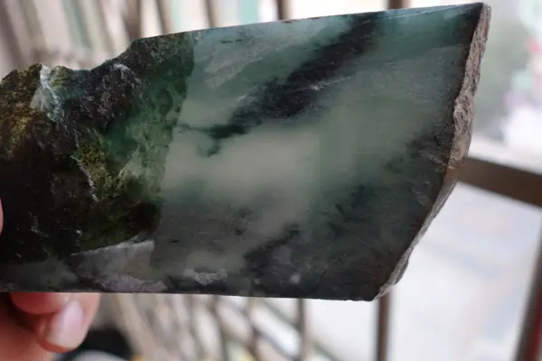 打光,通過打光來分析翡翠原石內部的情況(如下圖所示),這可是行家們出價前參考的重要內容。