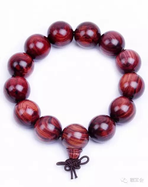 (5)紋路:紫檀柳珠子多是順紋的,紋路發紅切感覺很淡,黃花梨的紋路很少有發紅的,個別也是紫色變淺過渡成紅的。
