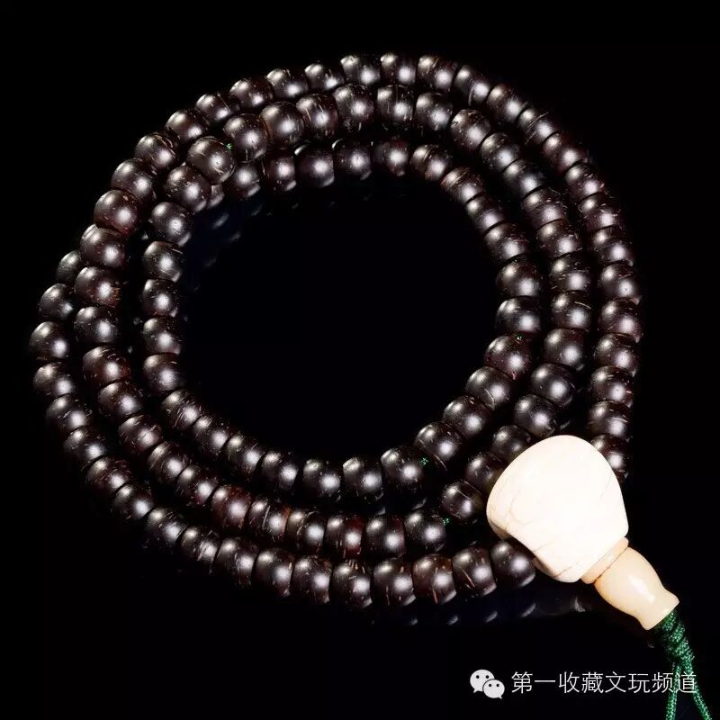 椰殼佛珠的歷史由來已久,唐宋已有此佛珠,到清代有史料可查。清代稱“木牙”、“椰蒂”、“滿貫”,尤其是包漿一流的老椰殼菩提佛珠,更是很難求到,其價值也遠遠超過老紫檀佛珠。椰殼佛珠一般形為扁珠,用椰蒂磨製,表面看其材料普通,但一串好品相椰殼佛珠也極其罕見。盤佩椰殼佛珠,冬不涼手,夏不畏汗。據清代袁枚《隨園詩話》中說:“近來習尚,丈夫多臂纏金鐲,手弄椰珠……。”趙棻在《濾月軒文集》中亦有相同的記載:“乾隆年間,戶部侍郎趙秉衝,精選一串椰子數珠,珍比千狐之腋。”由此可知用椰殼(蒂)來製造佛珠在清初已很普遍,有數百年的歷史了。椰殼手串,有人給他起名為“滿貫”,大有意思,因為“貫”是用來串錢的繩子,所以這個寓意非常貼切。