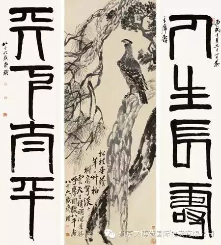 ▲齊白石《松柏高立圖·篆書四言聯》2011年5月22日嘉德春拍4.255億元人民幣。