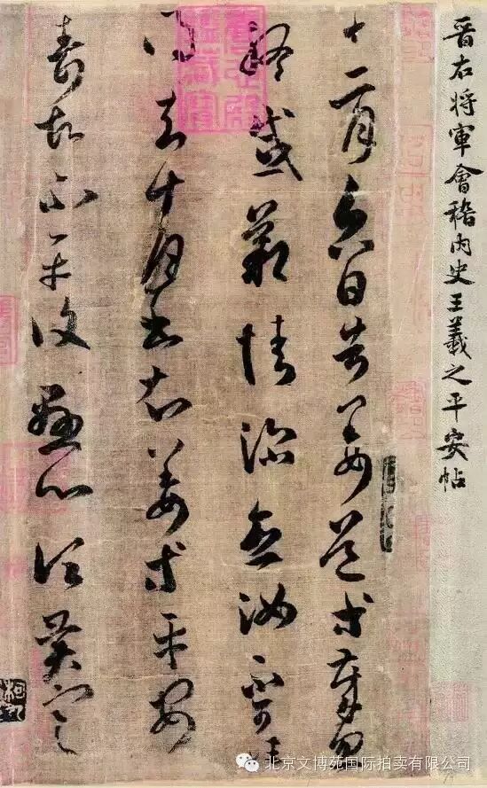 ▲王羲之草書《平安帖》2010年11月20日嘉德3.08億人民幣。