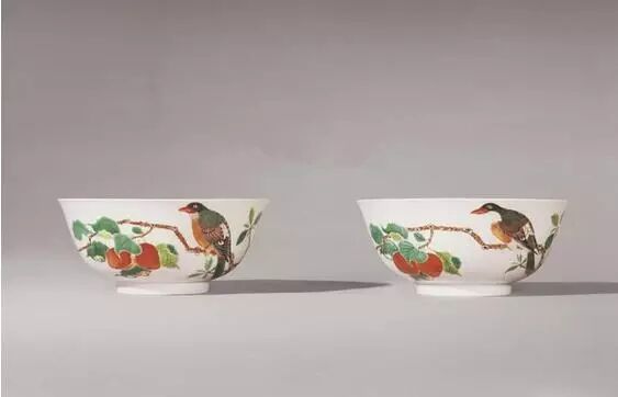 二、粉彩:有粉質感,也用渲染,立體感強。但粉彩渲染不能做到全粉彩化,其中的礬紅彩必定是五彩。如果發現礬紅彩粉化或玻化,此物必定是用現代工藝燒造。因為要達到玻化或粉化,燒造溫度高,但達到800-900℃後,礬紅彩就會出現流動,會破壞畫面的色彩。因此,民國以前的粉彩器中,礬紅彩都是使用五彩的。與琺瑯彩比,粉彩有粉質感,有立體感,表面平滑,但無玻璃質感。特別是在綠彩、黃彩上易見蛤蜊光出現。