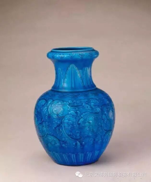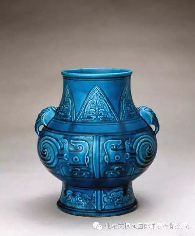 (清康熙孔雀綠釉暗花蕉葉饕餮紋尊)