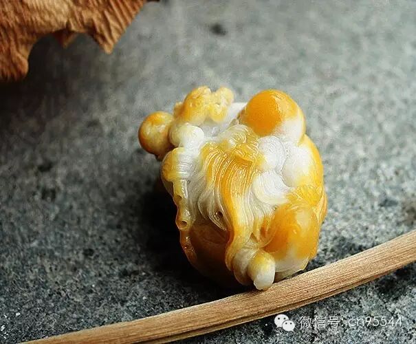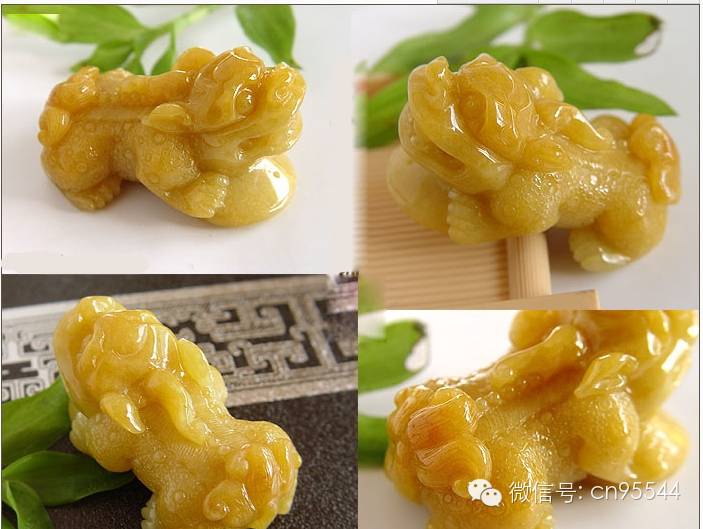 冰玻種巧色黃翡磨沙雕法翡翠貔貅掛