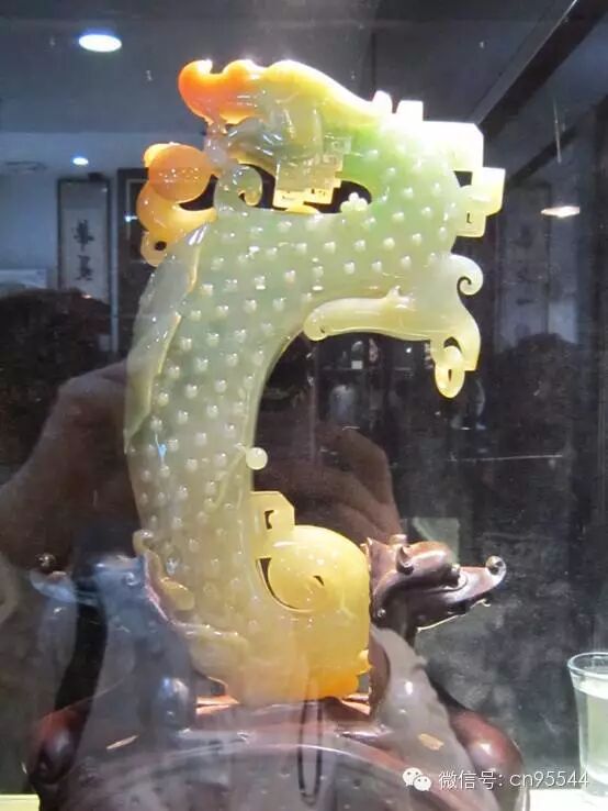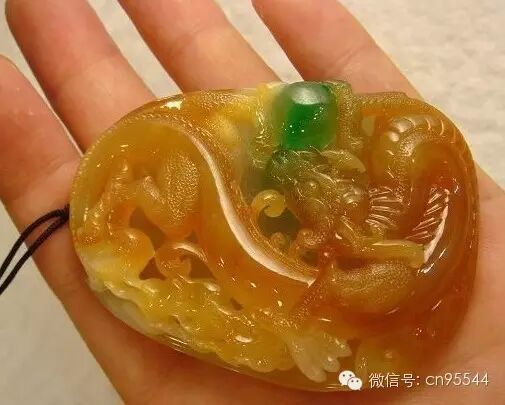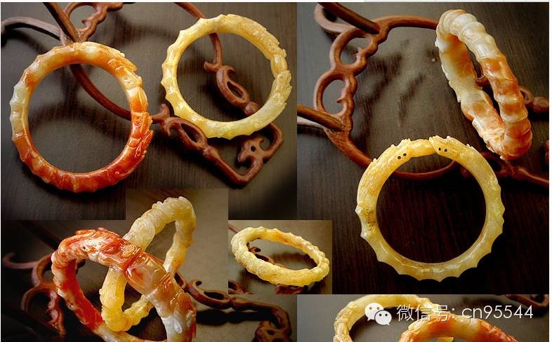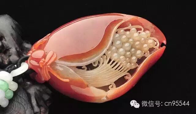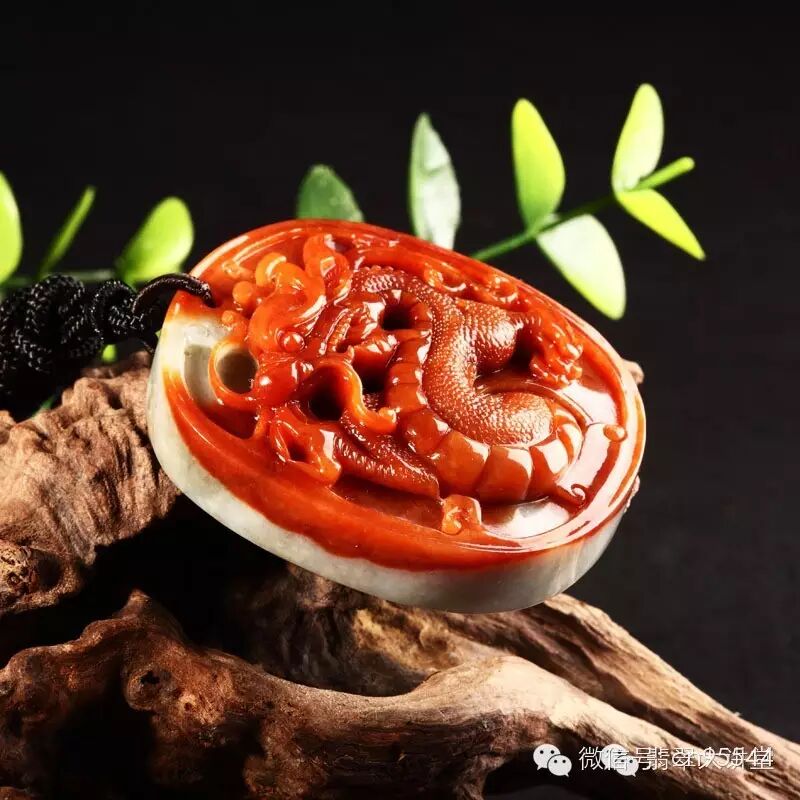 紅色翡翠多為棕紅色或暗紅色,使人有“暗暗遊遊”的感覺,厚實而不通透,玉質偏粗,多帶雜質,價值不高,紅翡一般可在雕件中作俏色雕琢,有時與翠色和紫羅蘭色共存在同一塊玉石中,俗稱“福祿壽翡翠”或“桃園三結義”,由它製成的紅色翡翠手鐲等飾品非常惹人喜愛,倘若“水”好質佳,則價格不菲。