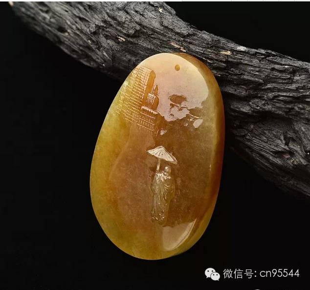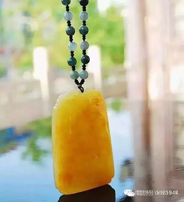 黃翡位於紅翡之上,更加貼近表皮,由褐鐵礦浸染為主而形成“黃霧”。多數黃翡混濁不純,常帶褐色,不夠陽也不夠透。通常將黃色翡翠加熱形成深紅或鮮紅色調的紅翡。天然優質的黃翡又稱“金翡翠”,呈橘黃色或蜜糖色,晶瑩透亮,色鮮又勻,屬黃翡之上品,較為罕見。