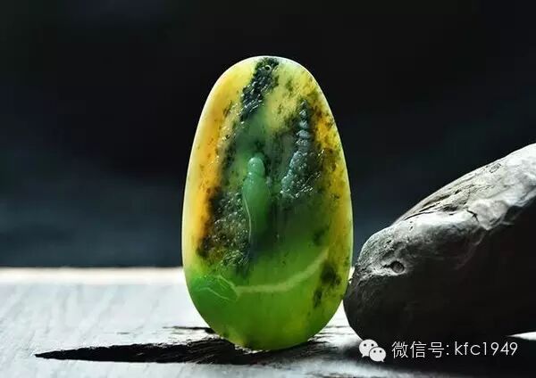 原生的翡翠山料多為純色,翡翠原石只有歷經剝蝕風化作用才有可能出現多種顏色的集合,黃加綠翡翠是在原生色綠色的基礎上加入了次生翡色,而原生的綠色翡翠本已稀少,儘管具有紅黃翡色層的翡翠毛料較多,但能同時在毛料中出現綠色和翡色的玉料就極為罕見了,如果色澤艷麗、細膩通透,更是稀世珍品。