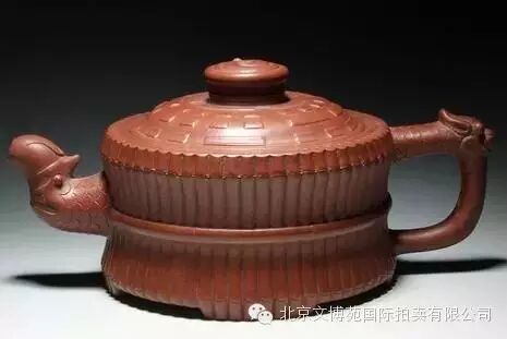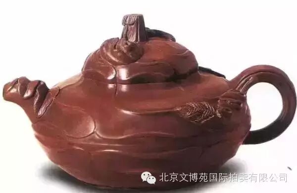 風捲葵壺壺身造型取風捲葵花之形狀,既應物象形,又氣韻生動。圖案規則,做工精緻,仿古式而合度,器形的工藝甜味濃厚,把梢下鈐篆書陽文“楊氏”小圓印。此壺由楊鳳年設計,是楊彭年的胞妹,此風捲葵壺的神韻,也可得觀其造壺藝術的一斑。