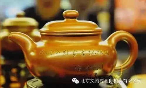 供春壺以外形似銀杏樹癭狀而得名。壺身作扁球形,泥質成素色,凹凸不平,古縐滿身,紋理繚繞,寓象物於未識之中,大有返璞歸真的意境。壺蓋止口外緣刻有四十五字隸書銘文:“做壺者供春,誤為瓜者黃玉麟,五百年後黃賓虹識為癭,英人以二萬金易之而未能,重為製壺者石民,提記者稚君。”供春,明正德至嘉慶年間茗壺創始人,他為紫砂文化開創了新局面。供春壺現藏於中國博物館。