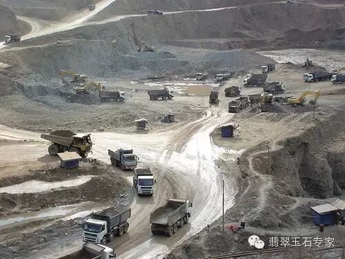 “新坑”,就是那些翡翠礦脈形成時間較晚一些的,遠離上述的那條礦脈的坑口。由於年紀較輕,露天形成時間也不夠,所以大多質地粗鬆,水頭短少,也有人將山料翡翠礦石也歸納進來,但其實大多數“新坑”翡翠礦石是從幾十米深的坑井裡掏出來的!最有代表性的當屬被行內人士稱作“83坑”的翡翠礦脈。因其被發現得較晚(1983年),加之產量頗巨,目前用來做翡翠飾品的原料,主要來自那個礦區。而真正老坑礦床由於幾代人的開挖,已經資源殆盡了。