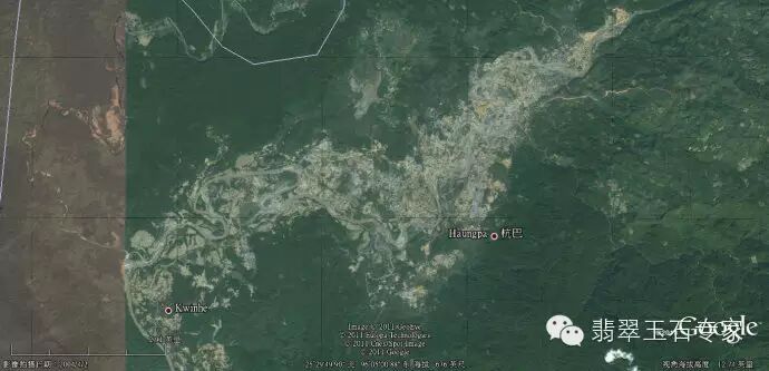 6、新場區:該場區位於烏魯江上游的兩條支流之間。主要是大件料,產品多是白底見青的中低檔料;位於表土層下,開採很方便。場口不少,但消失得很快,如1992年場口、1991年場口早已停採。主要場口有9個:莫西撒、婆之公,格底莫、大莫邊、小莫邊、馬撒、邦弄、三客塘、三卡莫。