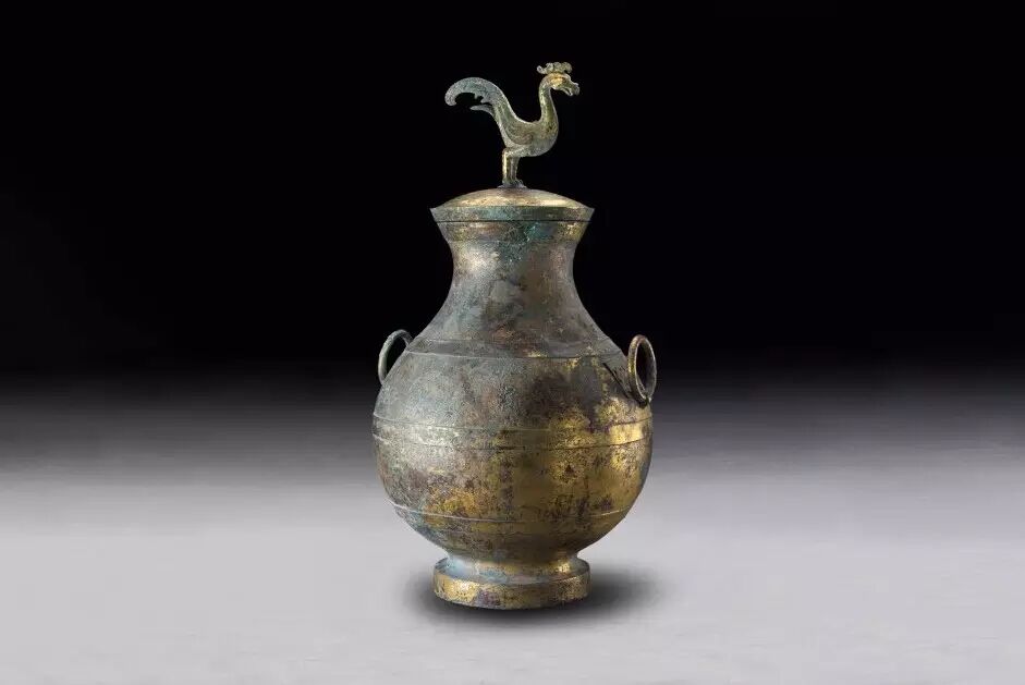 鎏金鳳鳥紋銅鍾(附酒):西安博物院藏品漢代酒器多以銅器和漆器為主,這裡展示的鳳鳥鎏金銅鍾,便屬於銅製盛酒器,出土時其中尚貯藏有漢酒26公斤。