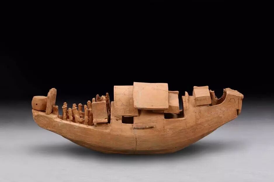 附鼓俑紅陶船:廣西文物保護與考古研究所藏品這艘附鼓俑紅陶船模型,雖只是墓葬品,但已生動地再現東漢時期的水上交通狀況。