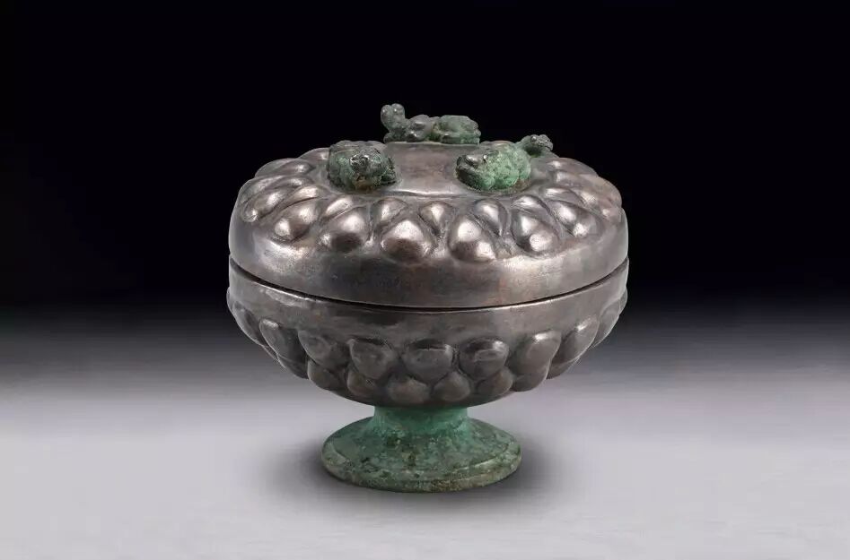 銀豆:齊國故城遺址博物館藏品古代的盛食器,以銀和青銅合製而成,蓋上附有三隻獸形鈕。