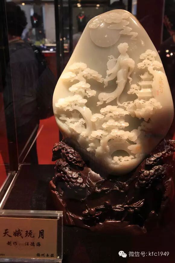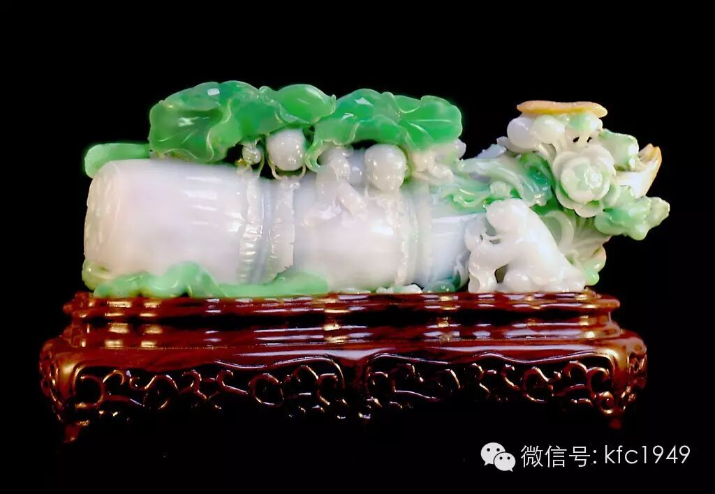 一件優秀的擺玩件,是在天然翡翠玉料的基礎上,經過慎密的構思和設計,最終要玉匠人一刀一刀地雕琢才能完成的。一塊上好的翡翠原料,無論其質地如何好、顏色如何美,如果未經過加工,則充其量只能稱為一塊“美麗的石頭”。只有經過去皮、開料,去瑕避疵,巧思設計,精心雕琢,仔細打磨拋光,才能成為一件翡翠藝術品。精湛的刀法雕工,就是要求所刻雕件紋飾對稱,富有韻律感,雕刻立體浮雕紋飾時,底子應平整,圓環要渾圓光滑。